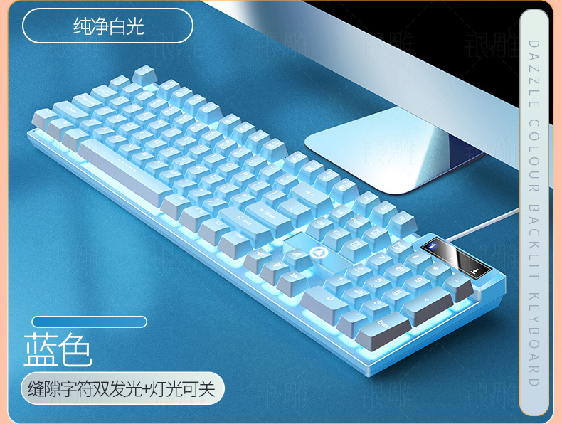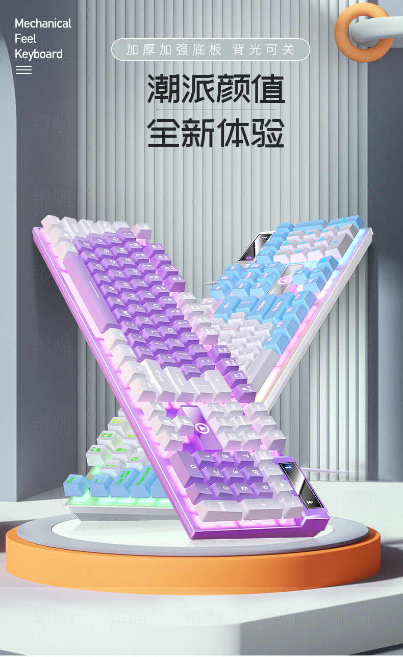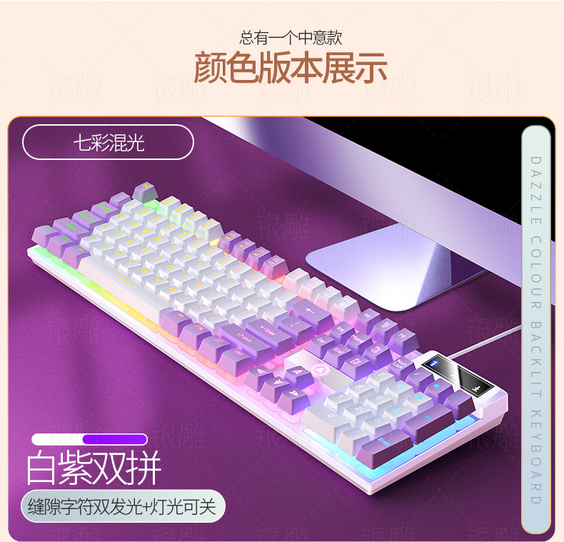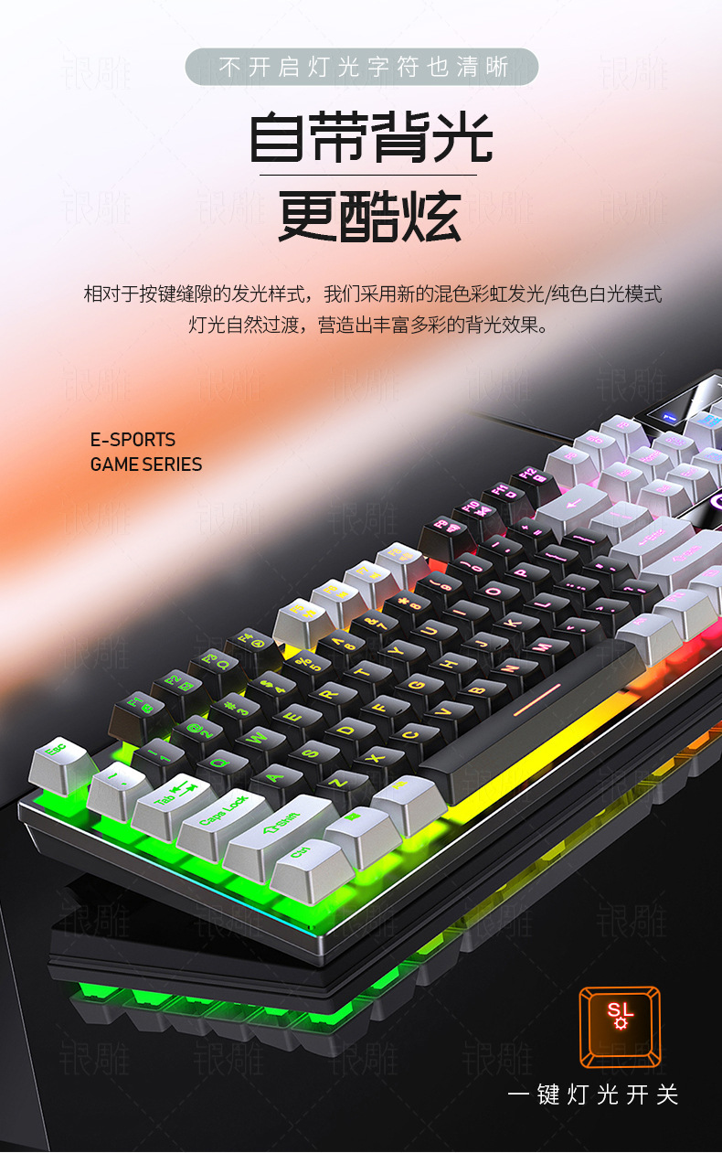 银雕K500游戏有线键盘拼色发光机械手感台式电脑配件批速卖通