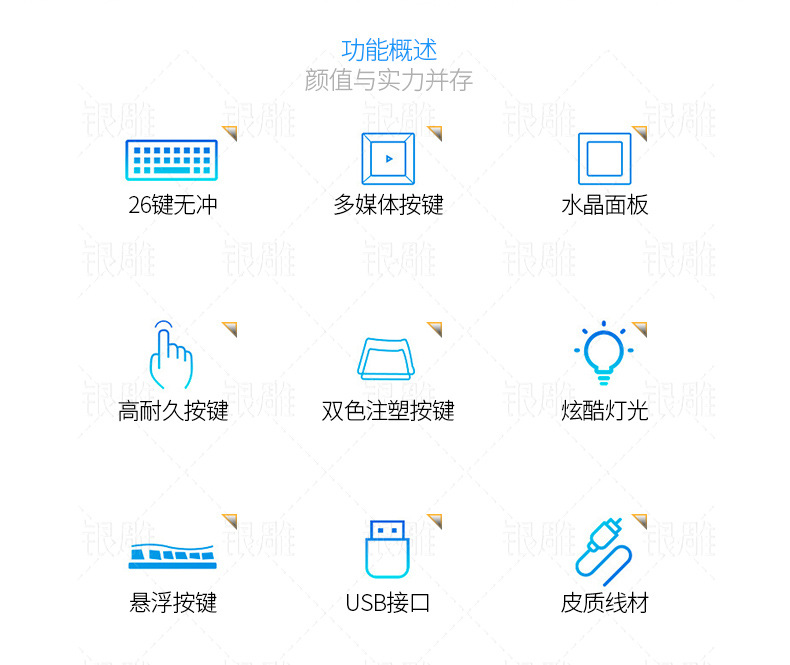 银雕K500游戏有线键盘拼色发光机械手感台式电脑配件批速卖通