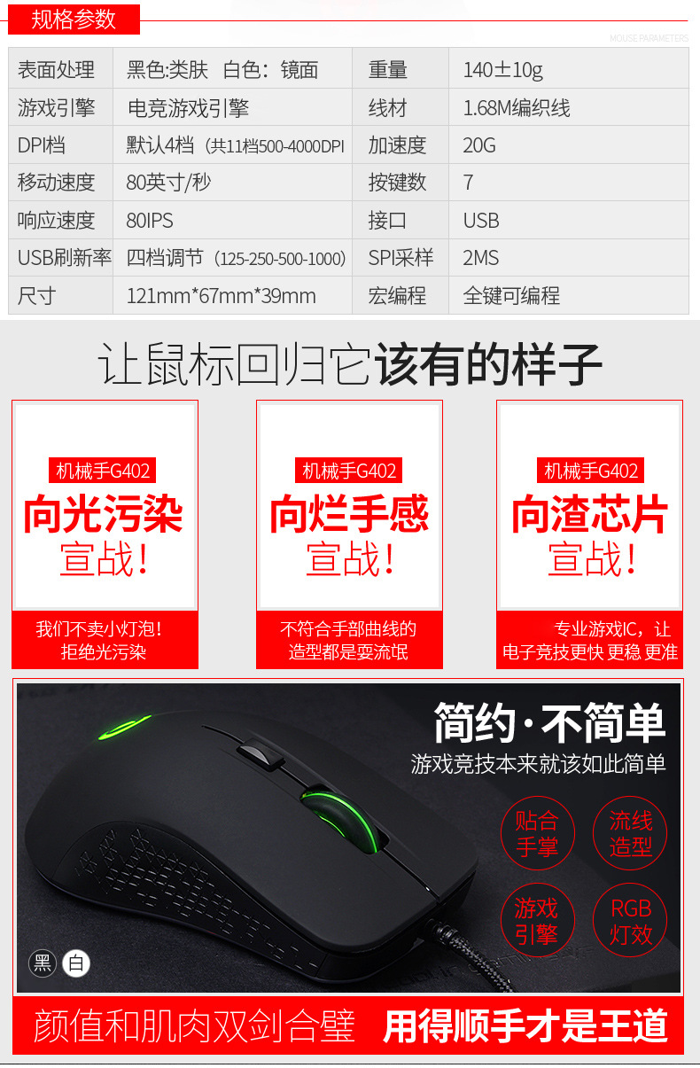 - 银雕粉色鼠标游戏发光有线女生可爱机械电竞宏静音电脑配件