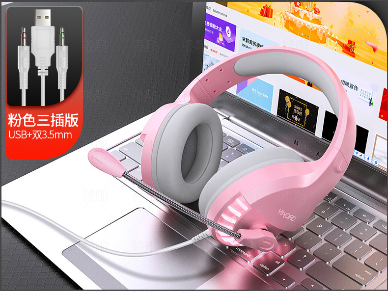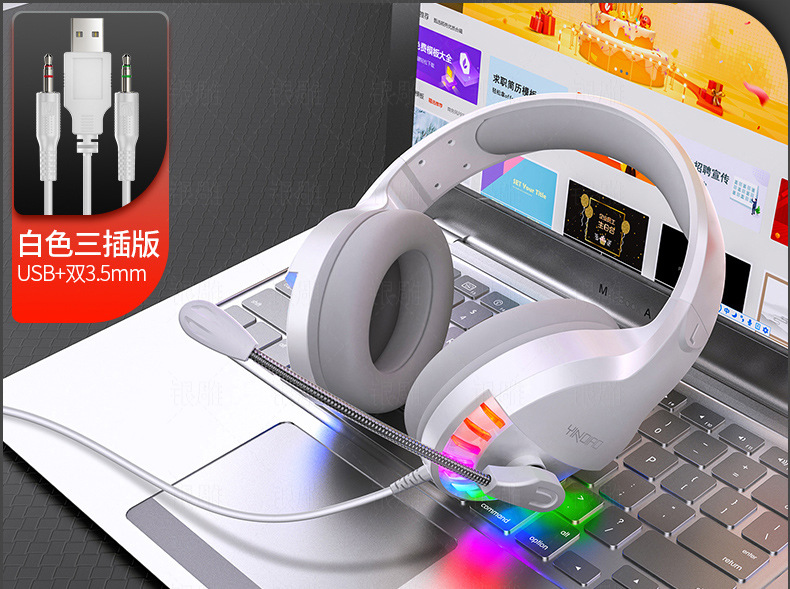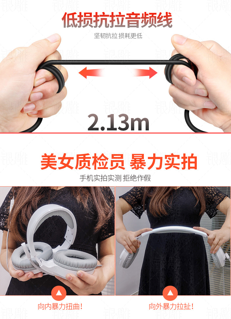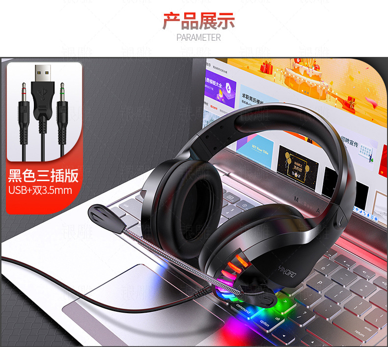 银雕Q2电脑耳机头戴式有线游戏耳麦带麦声卡笔记本平板