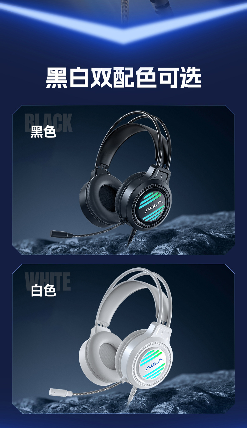 AULA狼蛛S606头戴式耳机电竞游戏耳麦7.1声道USB有线笔记本电脑机