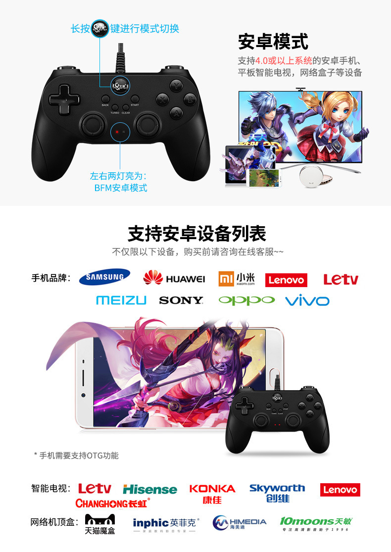 北通蝙蝠有线pc电脑ps3智能电视双人steam游戏手柄NBA2k18