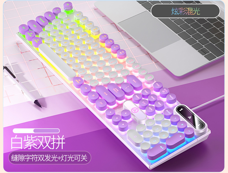 银雕K500游戏有线键盘拼色发光机械手感台式电脑配件批速卖通