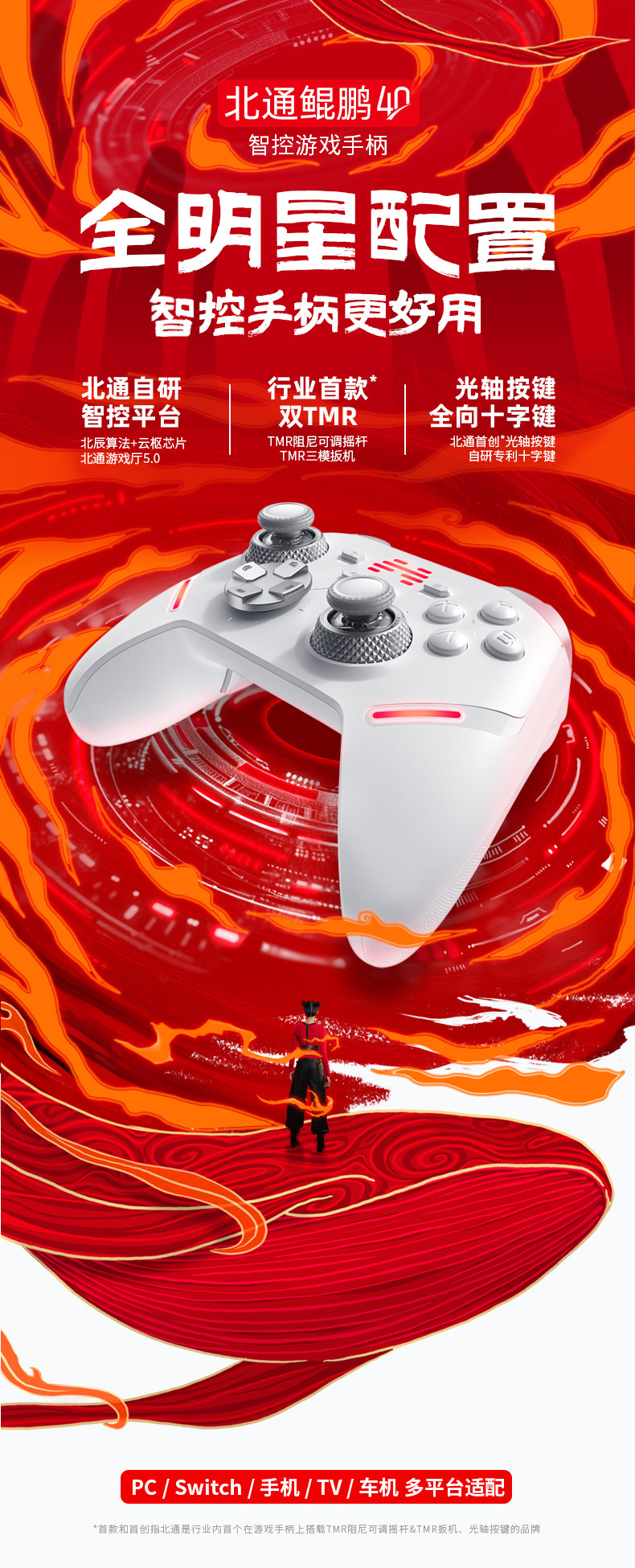 北通鲲鹏40智能游戏手柄pc电脑版怪物猎人无线switchTMR扳机光轴